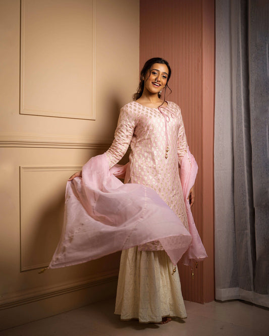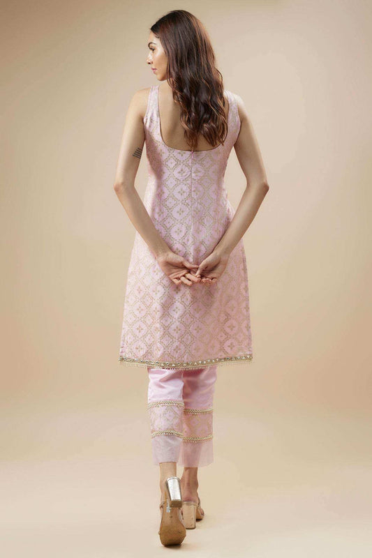 KALA Sleeveless Brocade Kurta Set-Blush Pink